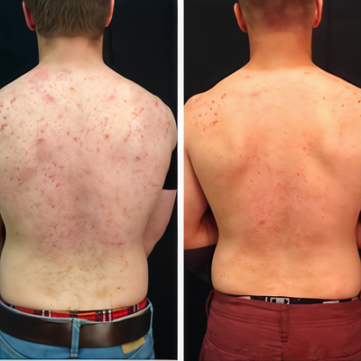 - Redness reduces, skin texture improves